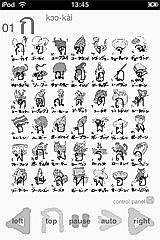 Application Name:thai language "Koh-kai" This application is display a "Koh-Kai" character table. "Koh-Kai" is language character table of Thailand. It is like alphabet character table. I goes travel to Thailand. Thai language signboard is seen, in town and airport. I want to read a Thai character typeface. Thai language character is a great complexity. The combination of "consonant" + "vowel" + "consonant". "koh-kai" a consonant of 42. memorize a "Koh-kai". help to read of thai language signboard with travel. This application continues to display repeat to thai character of 42. Anytime and anywhere, please read "Koh-kai". Options: 44 characters, including old letters. Adjust speed. Night mode. See you at Khaosan Road in Thailand! Thanks! Arigato gozaimasu! |