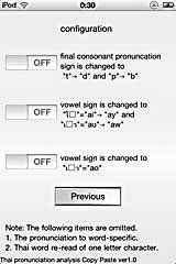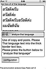 Application Title: Thai pronunciation analysis Copy Pastes This app can display Thai phonetic symbols from Thai language sentence. operation is very easy. copy paste of the Thai language sentence, and press the "analyze" button. Thai language is a very complexity character. When learning the Thai language, Examine the pronunciation of the sentences are very time consuming. This app can add phonetic symbols to the display of Thai sentence. copy paste of thai sentences, And analysis by simply pressing a button analysis. Notes for Automated analysis of the structure... 1. Pronunciation of the word unique is impossible. 2. One character reread letters omitted, is impossible. I am program editing now for adjustment more exact actions. Thanks! Arigato Gozaimasu! |