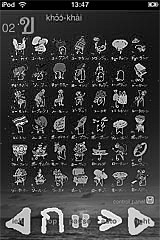タイ語コーカイ表 タイのコー・カイ表を表示します。 コー・カイ表とは、タイ語の文字の子音を並べた表です。 日本のひらがな50音表に似ています。 タイ旅行へ行くと、空港や町中でタイ語の看板を見かけます。 タイの文字を読めたら良いのに、と感じます。 タイ語は、子音と母音と末子音を組み合わせた、複雑な文字です。 コー・カイ表を覚えるとタイの文字を理解しやすくなります。 このアプリはタイ文字42個をくりかえし表示し続けます。 時間ができたら眺めるだけ。とっても簡単! 速度調整、旧字を含む44文字表示もできます。 ムーディーな夜モードも搭載。 いつでもどこでもタイ気分。 |