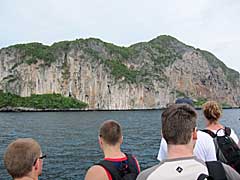 プーケット側から来ると、島の西側の壁面がお出迎え。ピピドン島です。